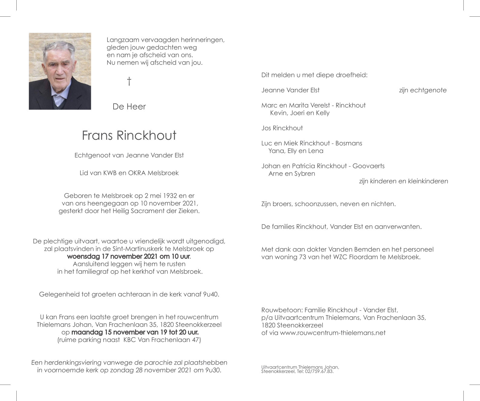 Overleden te Melsbroek (1820) op woensdag 10 november 2021 op 89-jarige leeftijd