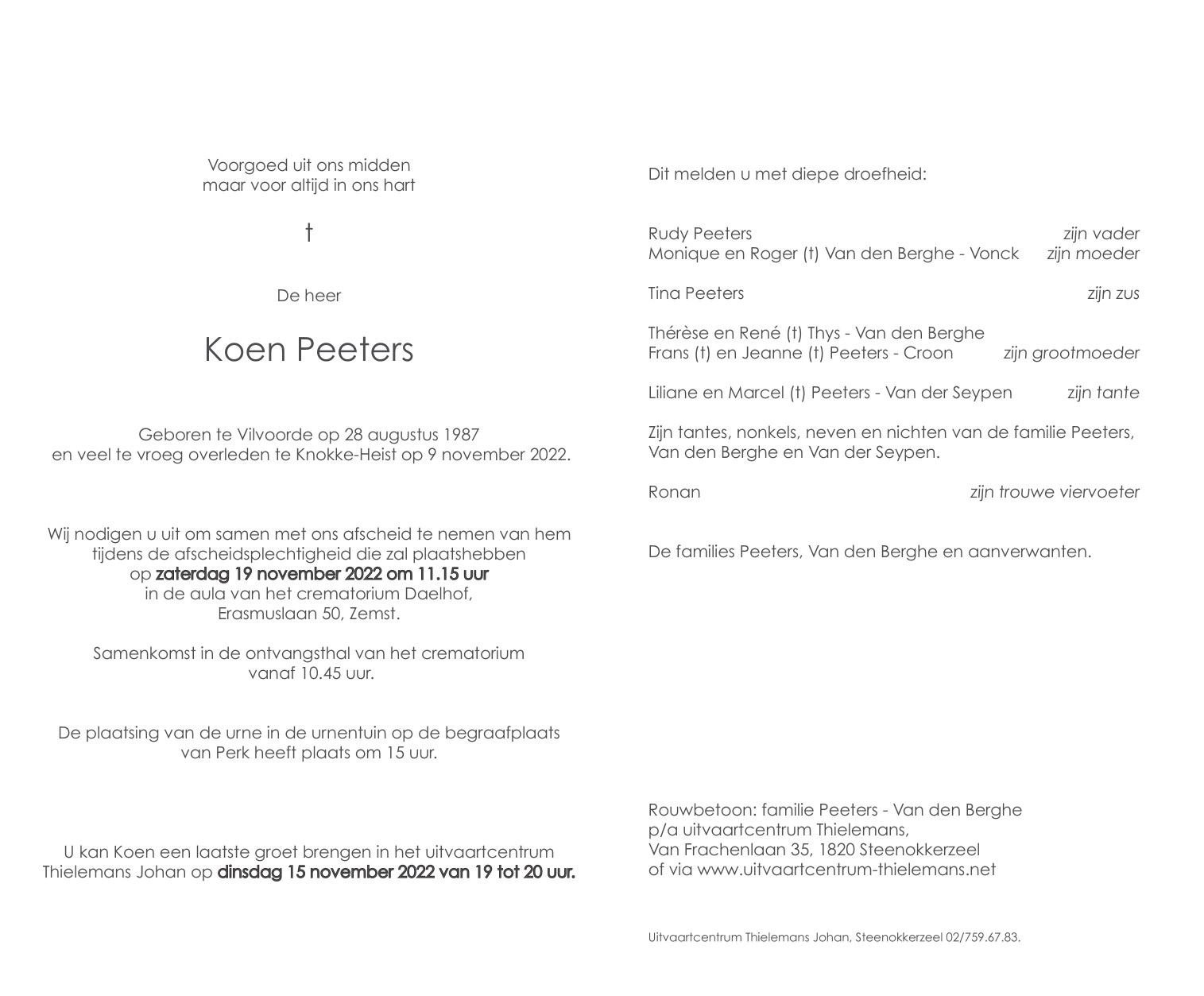 Overleden te Ramskapelle (Knokke-Heist) (8301) op woensdag 9 november 2022 op 35-jarige leeftijd