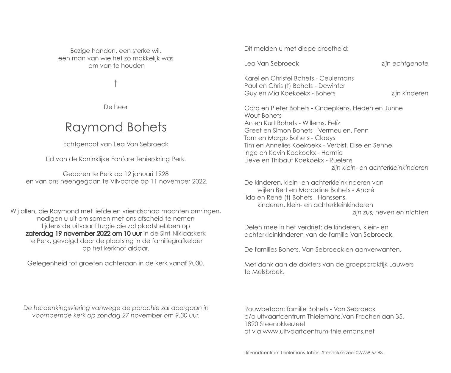 Overleden te Vilvoorde (1800) op vrijdag 11 november 2022 op 94-jarige leeftijd