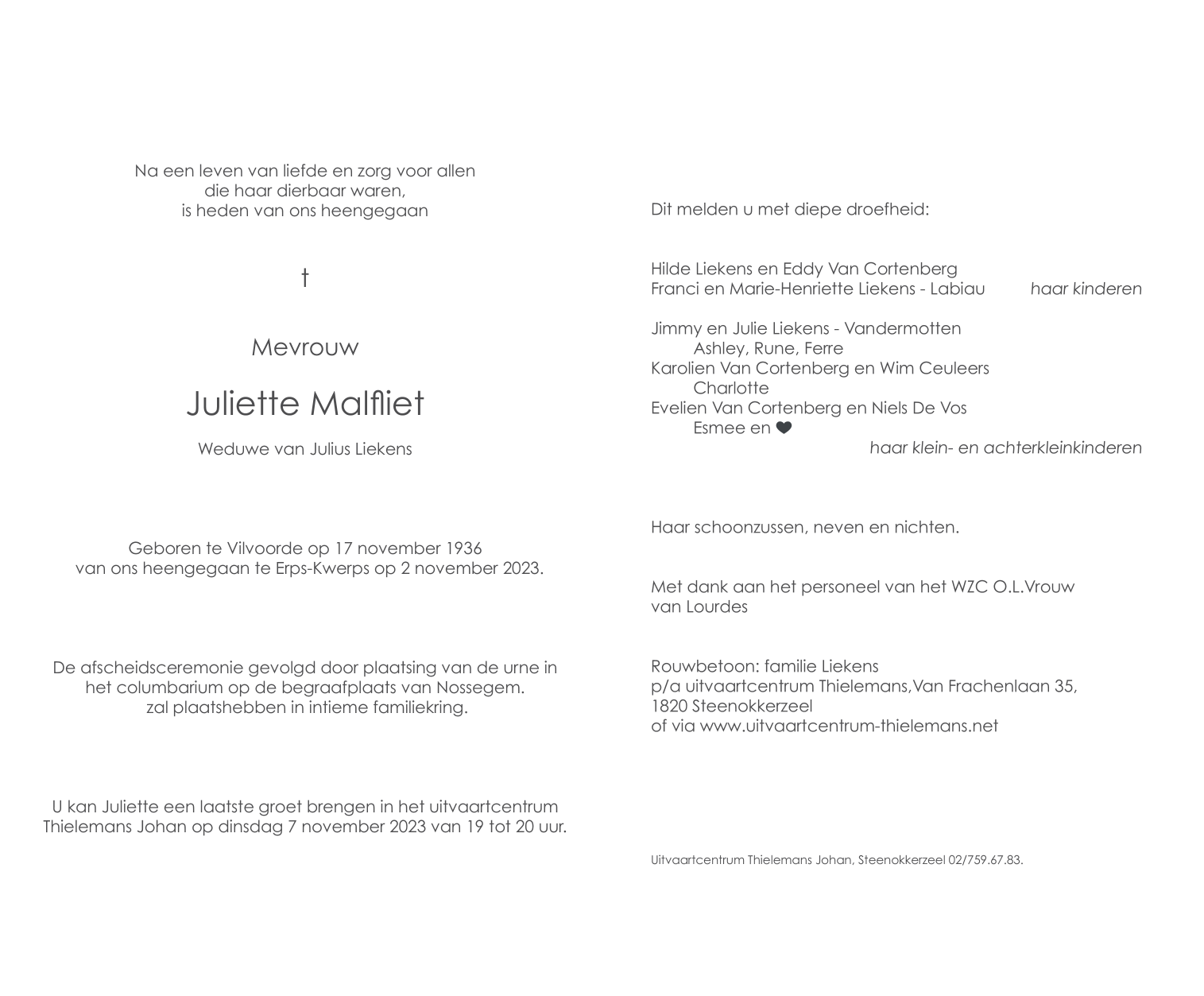 Overleden te Erps-Kwerps (3071) op donderdag 2 november 2023 op 86-jarige leeftijd