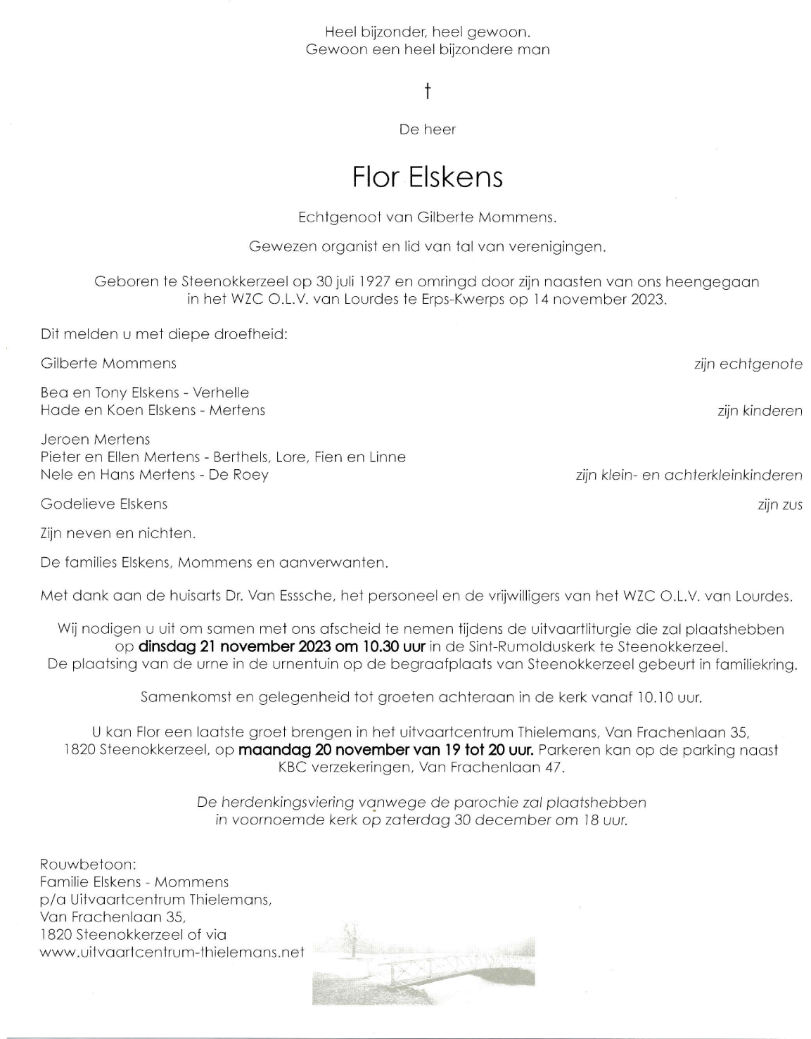 Overleden te Erps-Kwerps (3071) op dinsdag 14 november 2023 op 96-jarige leeftijd