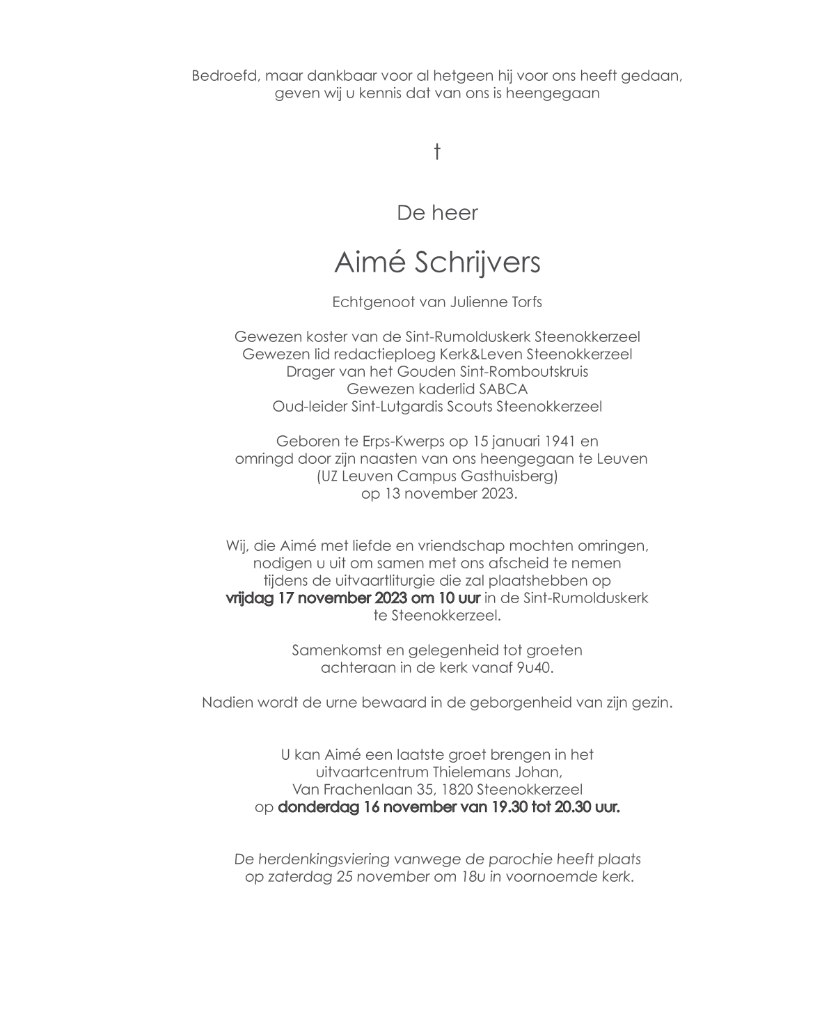 Overleden te Leuven (3000) op maandag 13 november 2023 op 82-jarige leeftijd