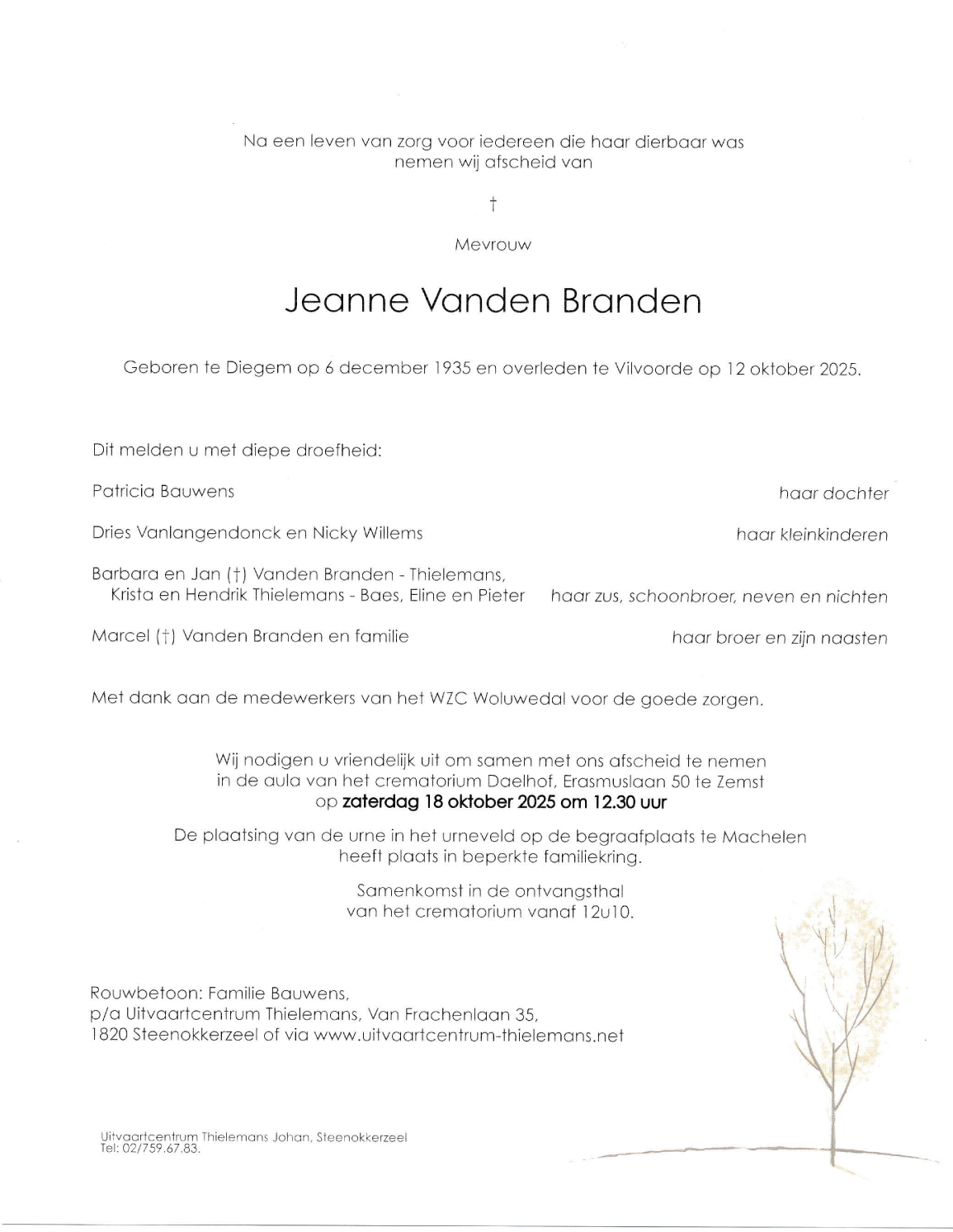 Overleden te Vilvoorde (1800) op zondag 12 oktober 2025 op 89-jarige leeftijd