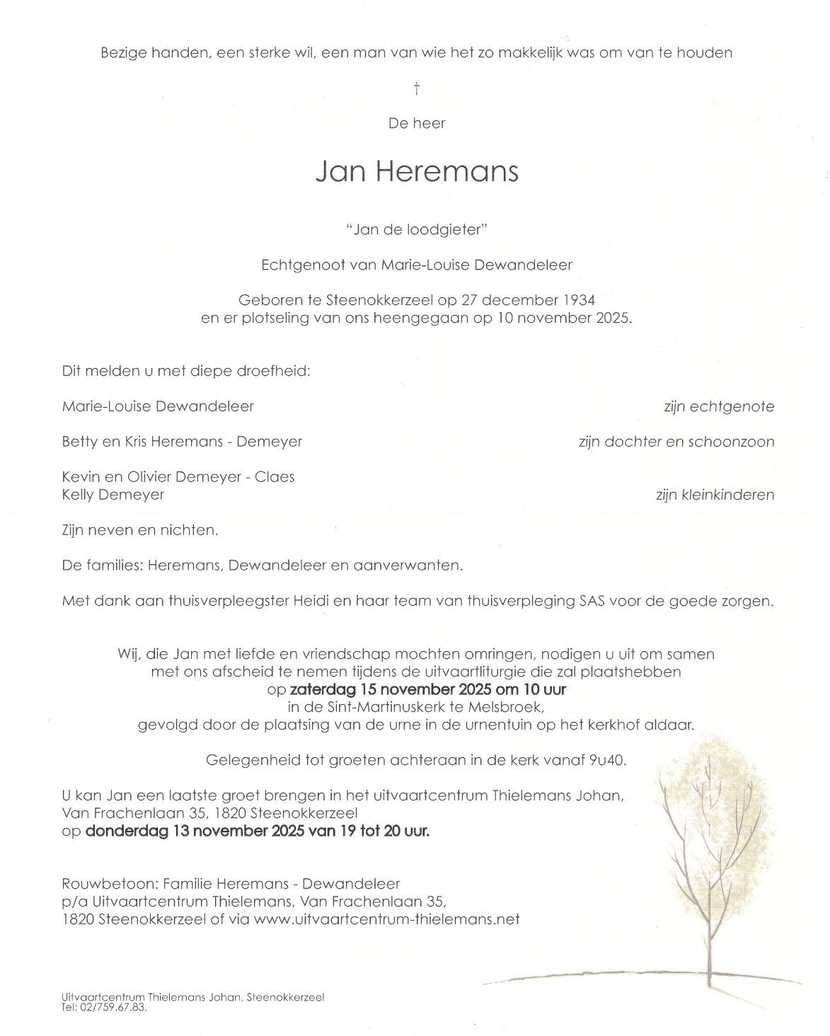 Overleden te Steenokkerzeel (1820) op maandag 10 november 2025 op 90-jarige leeftijd