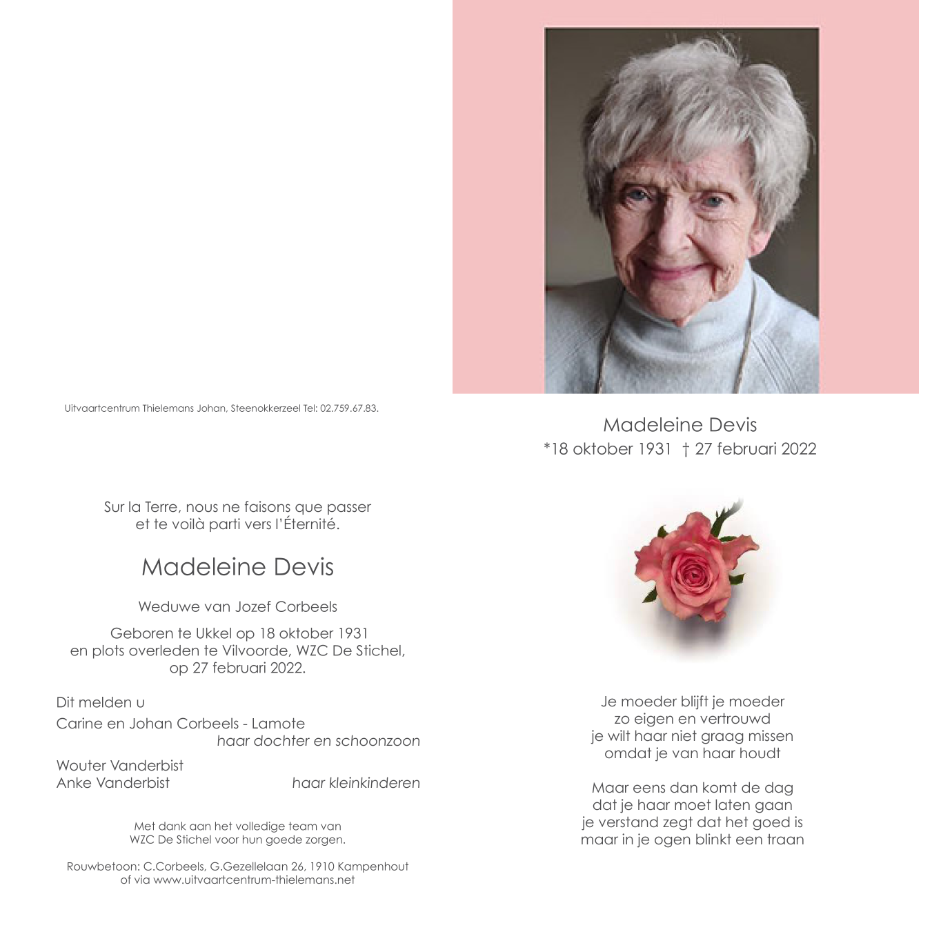 Overleden te Vilvoorde (1800) op zondag 27 februari 2022 op 90-jarige leeftijd