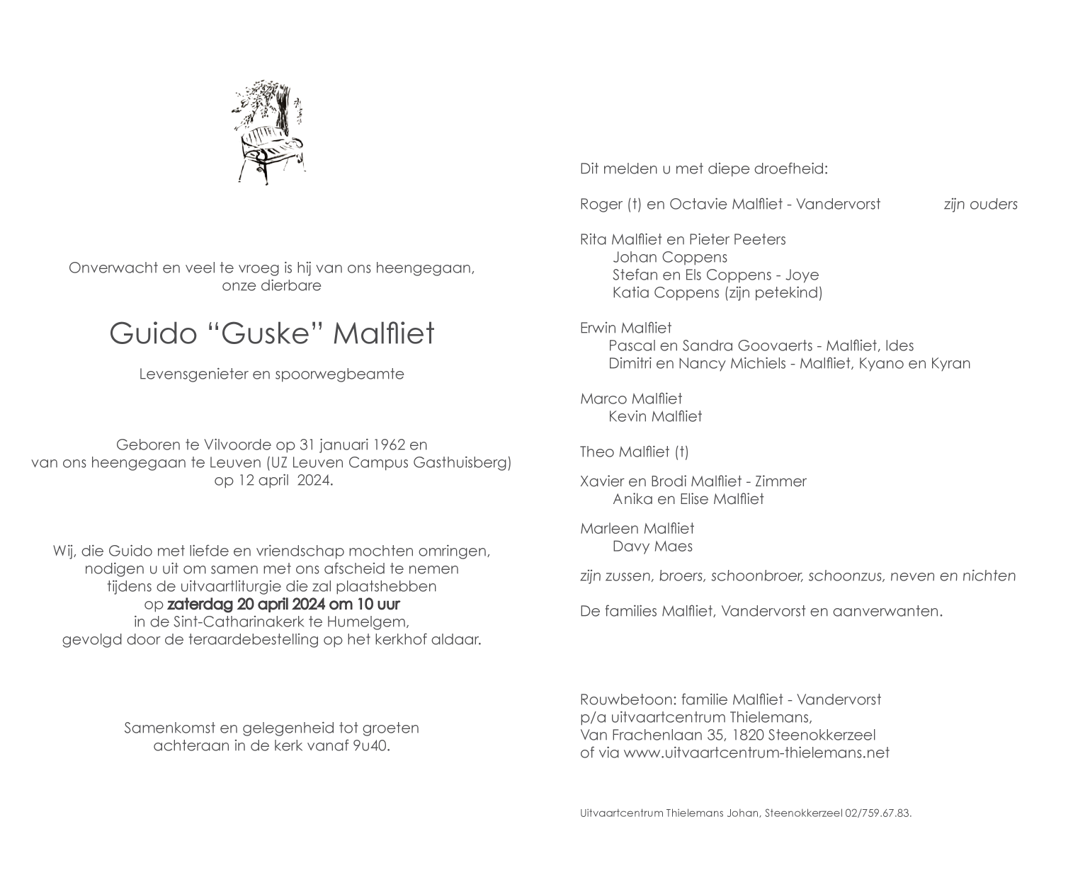 Overleden te Leuven (3000) op vrijdag 12 april 2024 op 62-jarige leeftijd
