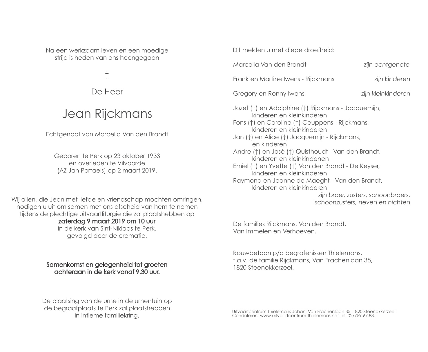Overleden te Vilvoorde (1800) op zaterdag 2 maart 2019 op 85-jarige leeftijd