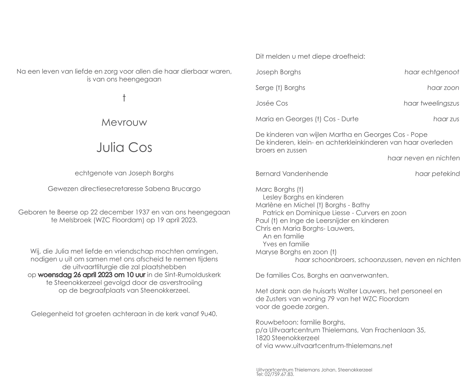 Overleden te Melsbroek (1820) op woensdag 19 april 2023 op 85-jarige leeftijd