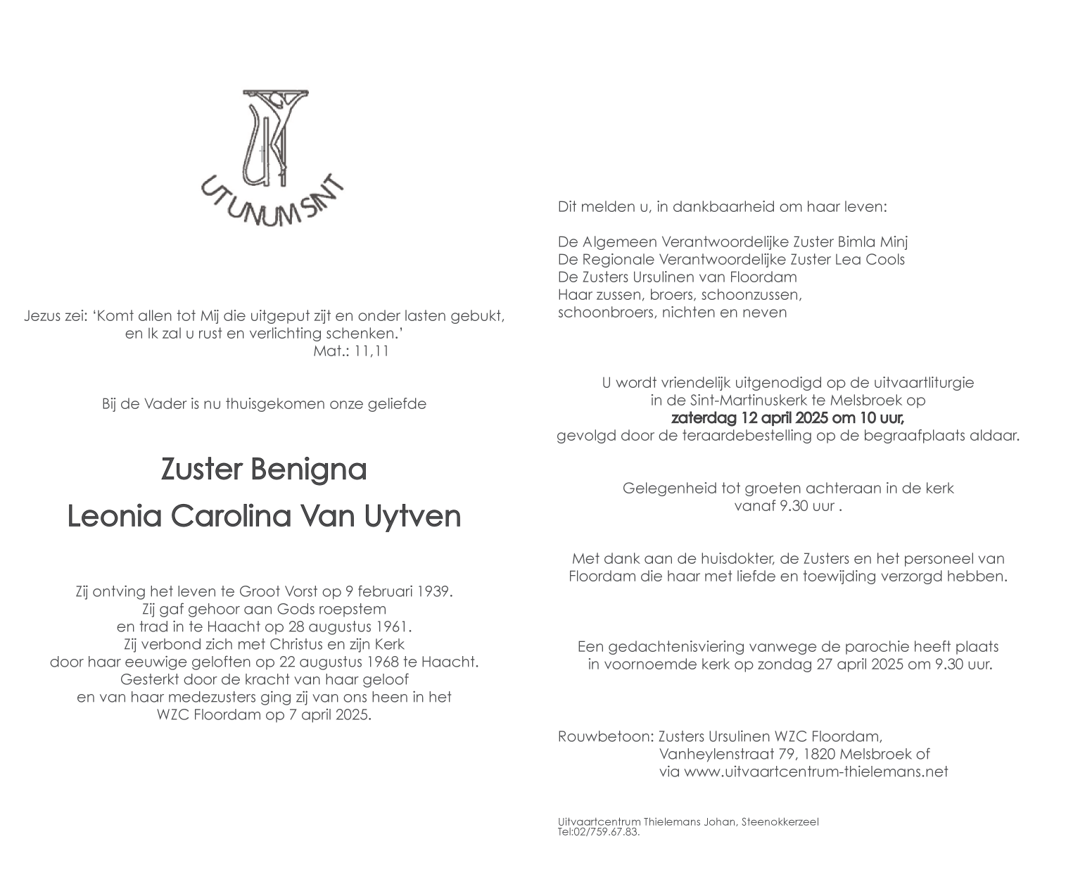 Overleden te Melsbroek (1820) op maandag 7 april 2025 op 86-jarige leeftijd
