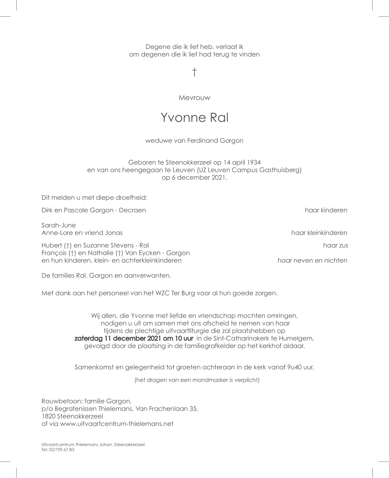 Overleden te Leuven (3000) op maandag 6 december 2021 op 87-jarige leeftijd