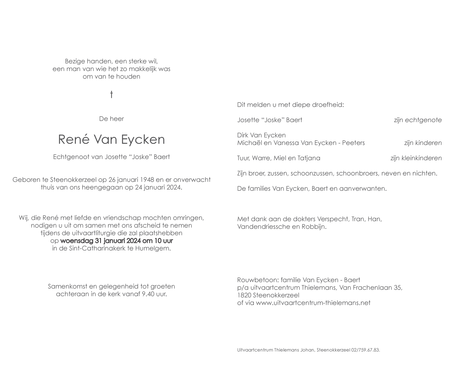 Overleden te Steenokkerzeel (1820) op woensdag 24 januari 2024 op 75-jarige leeftijd