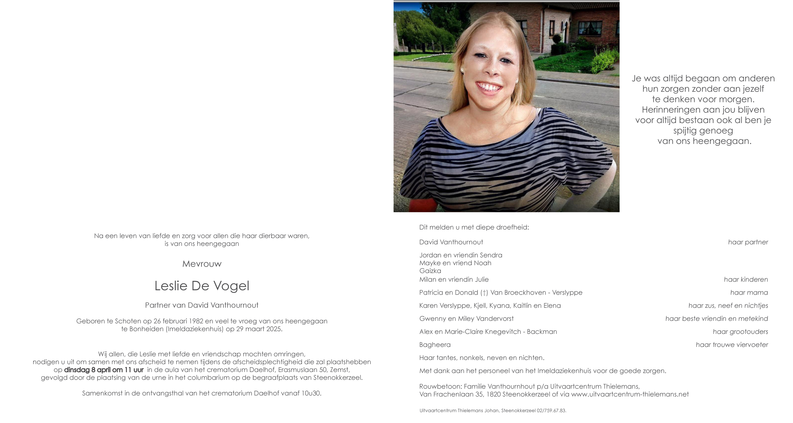 Overleden te Bonheiden (2820) op zaterdag 29 maart 2025 op 43-jarige leeftijd