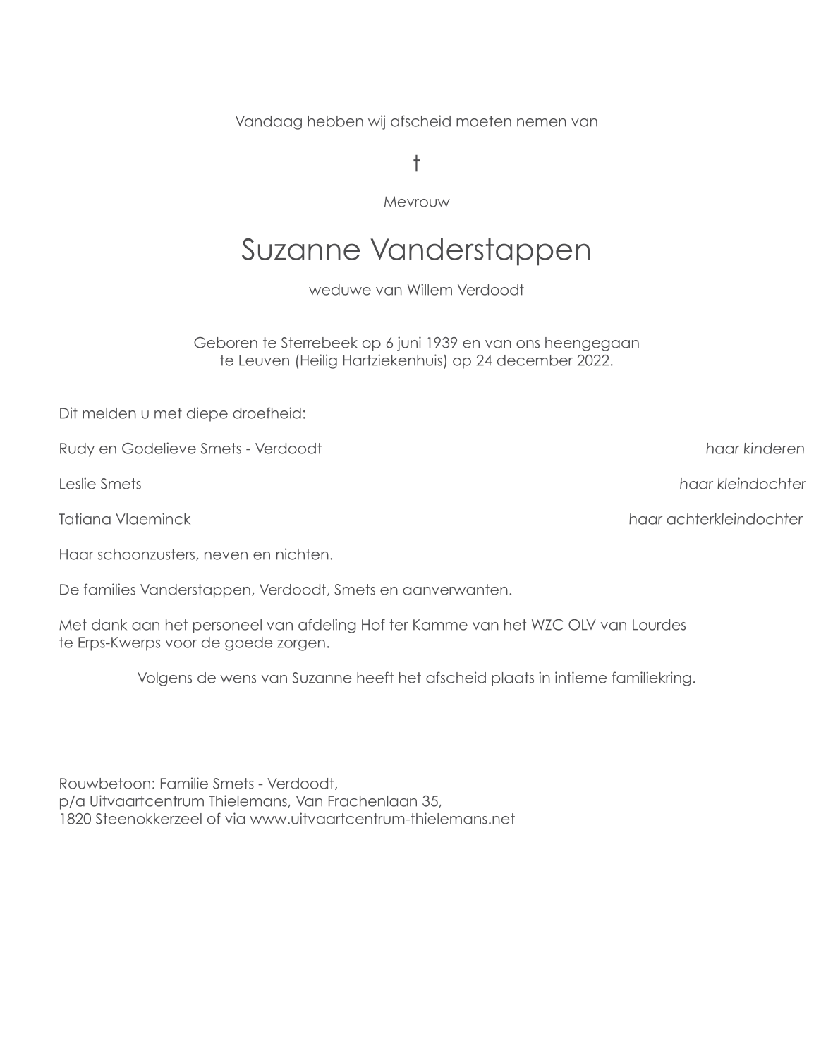 Overleden te Leuven (3000) op zaterdag 24 december 2022 op 83-jarige leeftijd