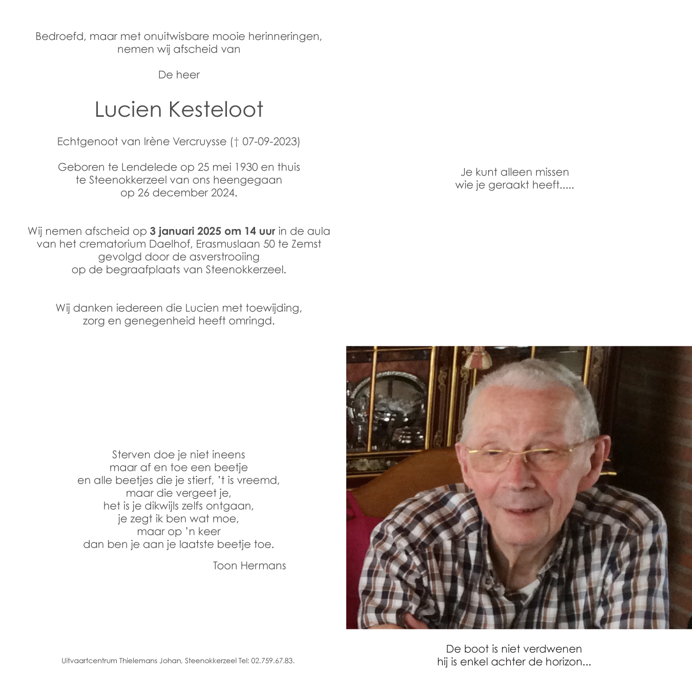 Overleden te Steenokkerzeel (1820) op donderdag 26 december 2024 op 94-jarige leeftijd
