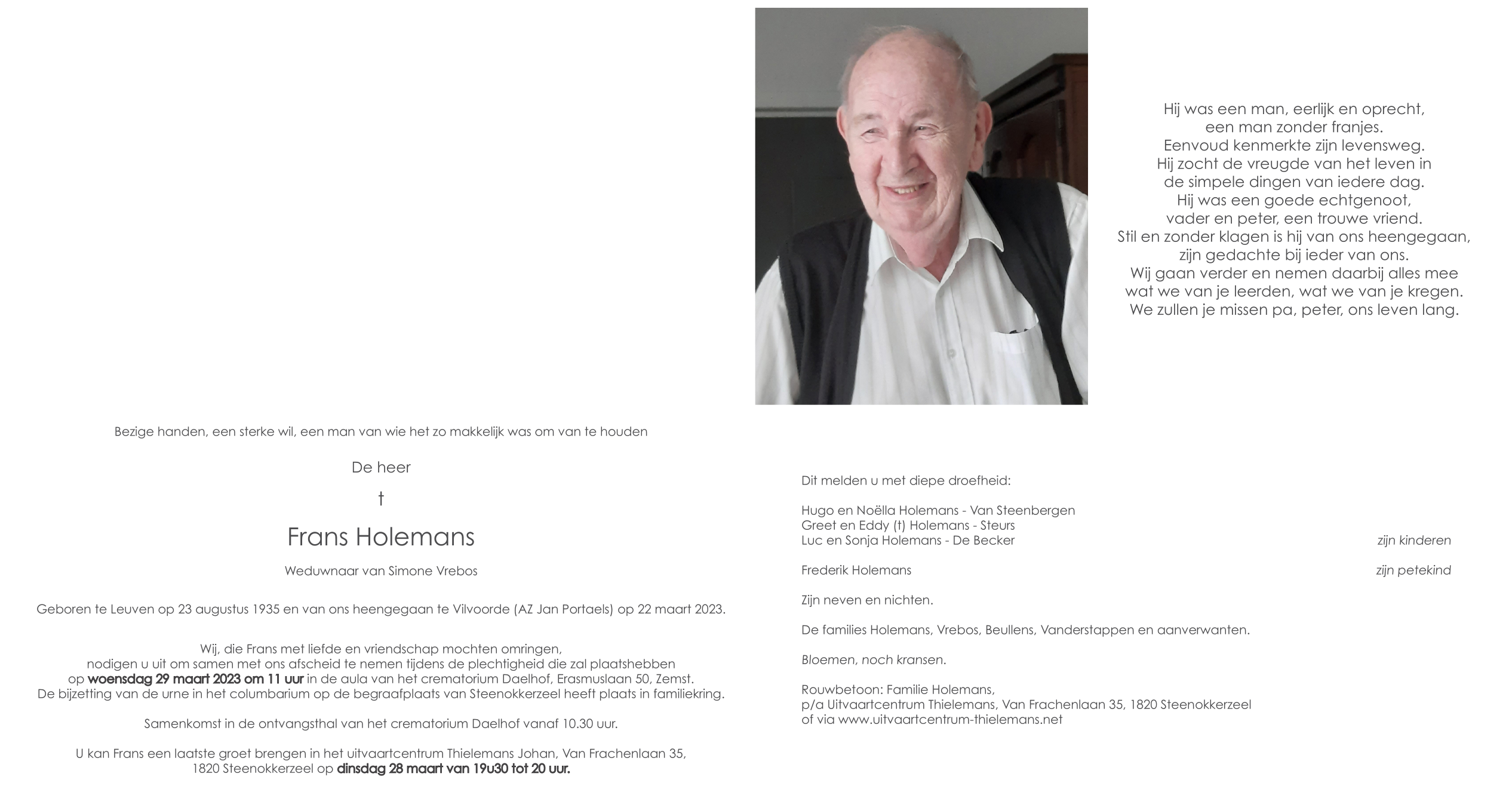 Overleden te Vilvoorde (1800) op woensdag 22 maart 2023 op 87-jarige leeftijd