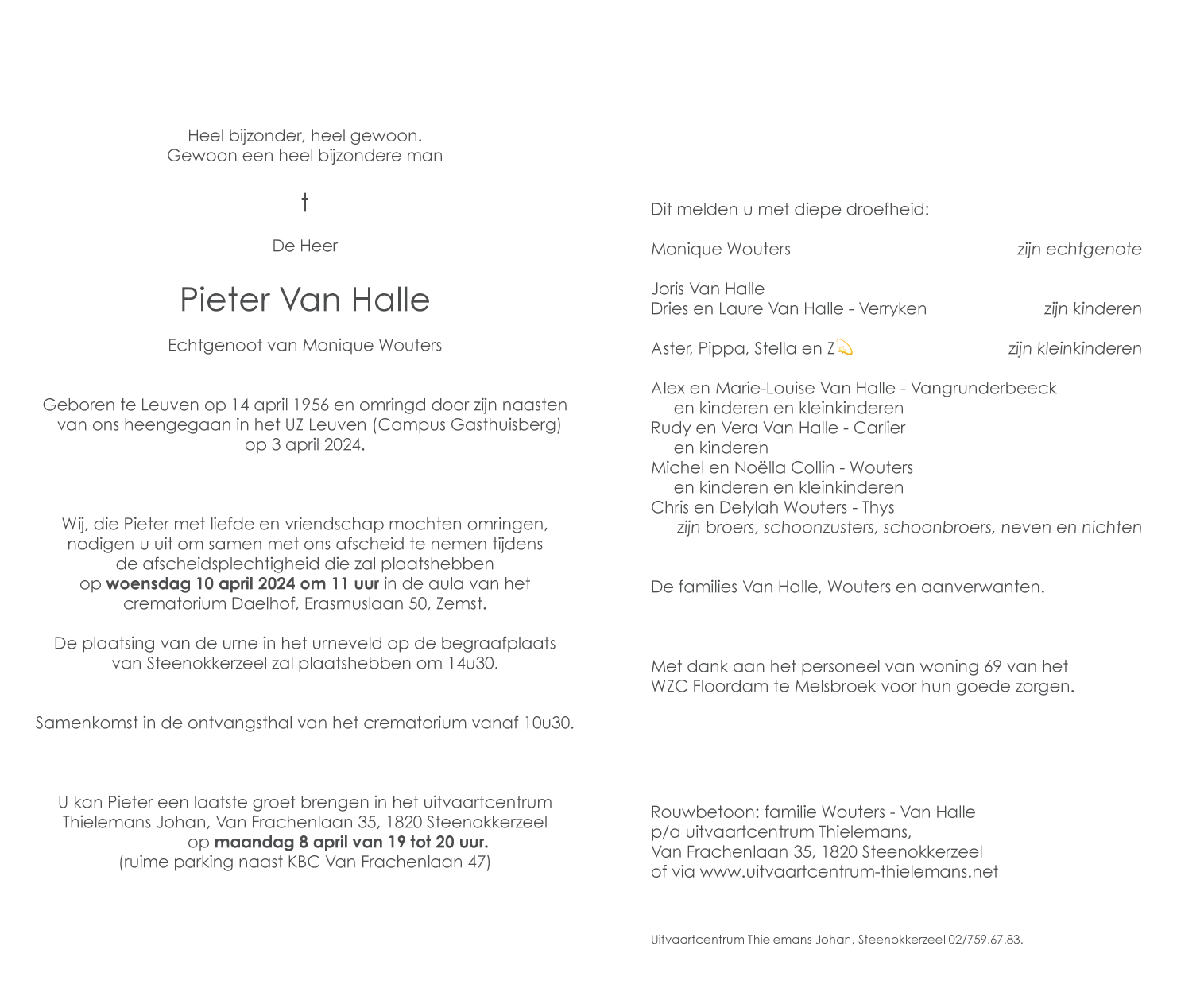 Overleden te Leuven (3000) op woensdag 3 april 2024 op 67-jarige leeftijd