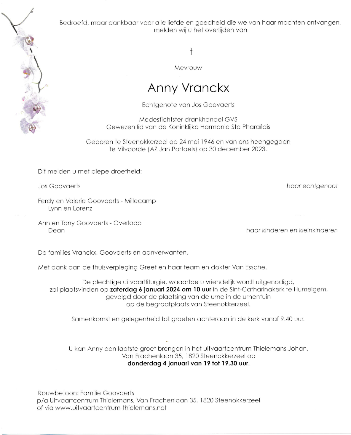 Overleden te Vilvoorde (1800) op zaterdag 30 december 2023 op 77-jarige leeftijd