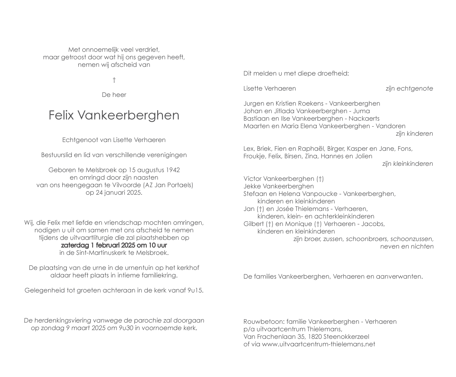Overleden te Vilvoorde (1800) op vrijdag 24 januari 2025 op 82-jarige leeftijd