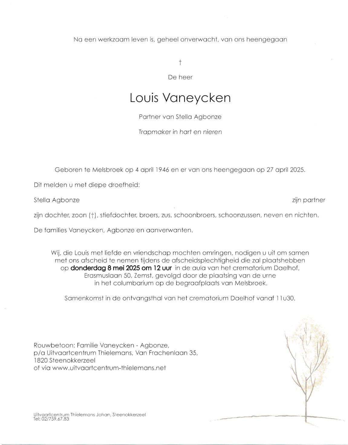 Overleden te Melsbroek (1820) op zondag 27 april 2025 op 79-jarige leeftijd