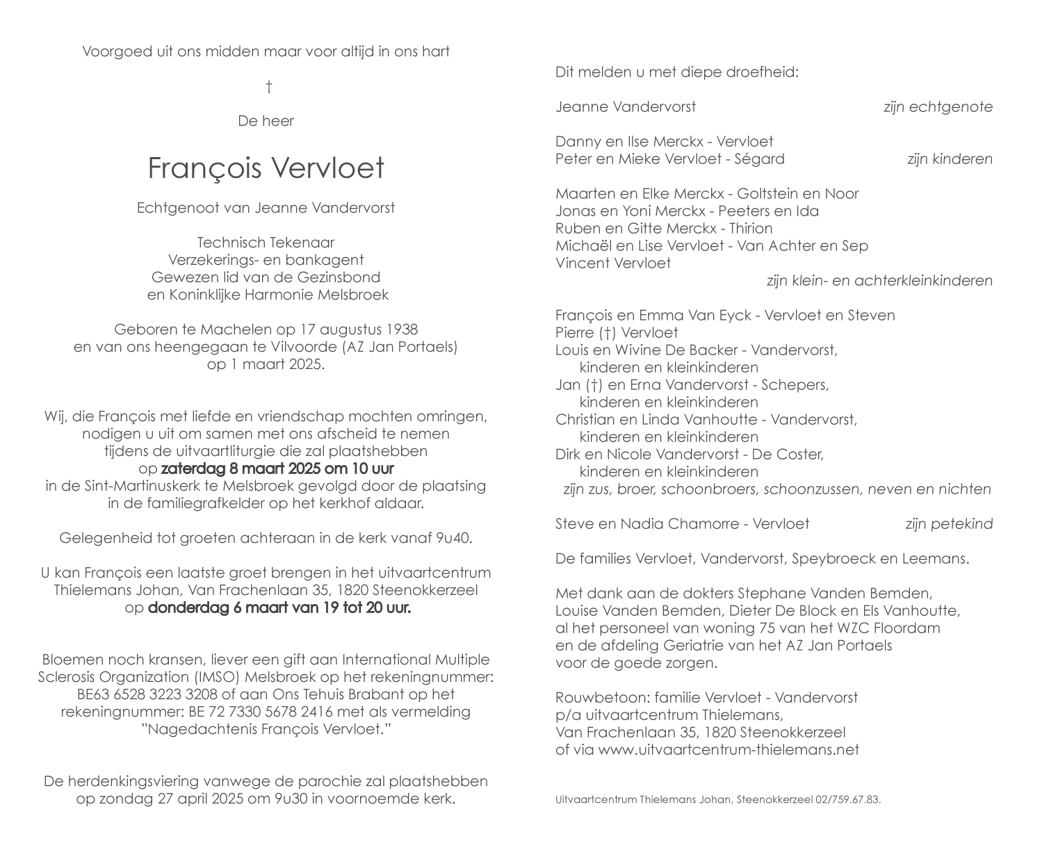 Overleden te Vilvoorde (1800) op zaterdag 1 maart 2025 op 86-jarige leeftijd