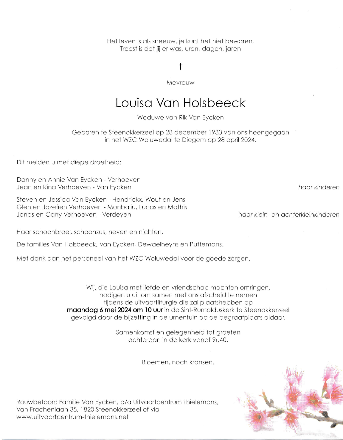 Overleden te Diegem (1831) op zondag 28 april 2024 op 90-jarige leeftijd