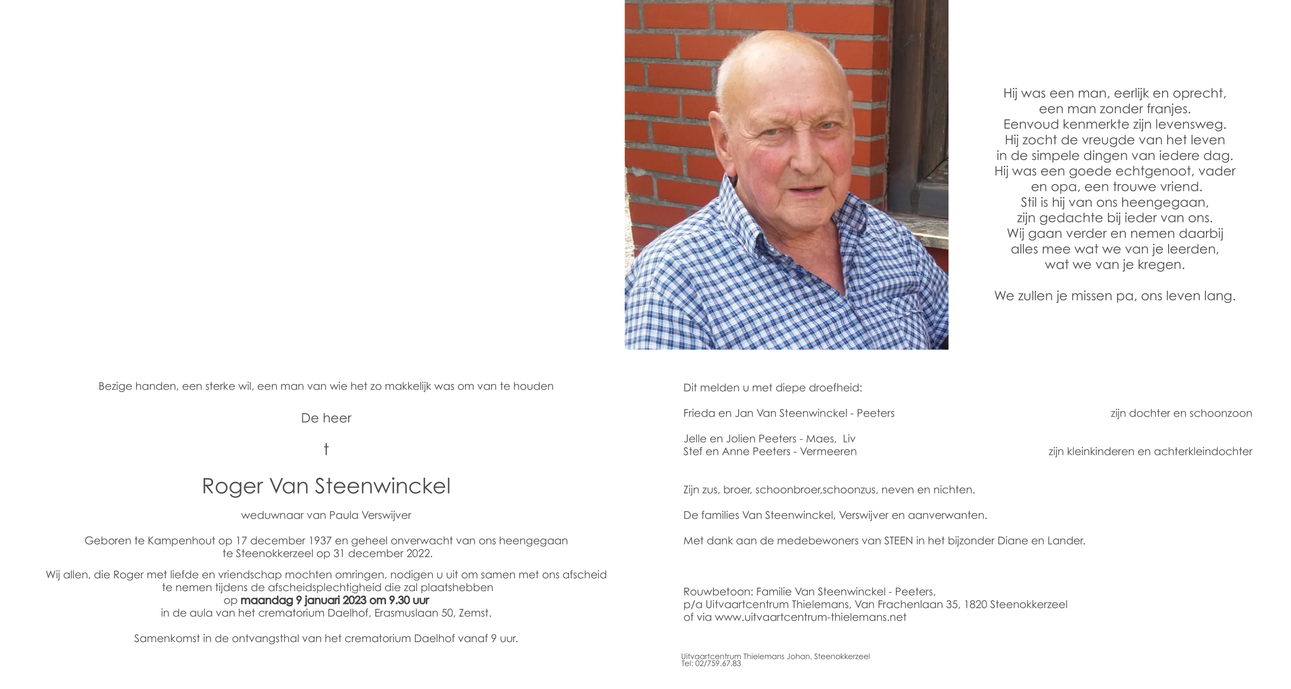 Overleden te Steenokkerzeel (1820) op zaterdag 31 december 2022 op 85-jarige leeftijd