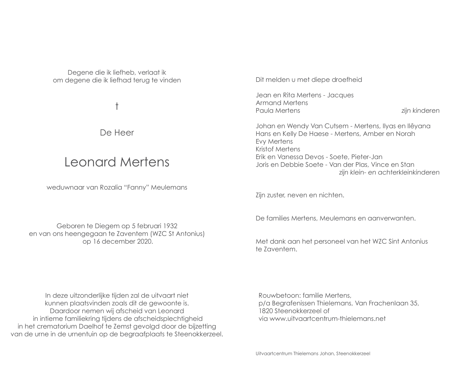 Overleden te Zaventem (1930) op donderdag 17 december 2020 op 88-jarige leeftijd