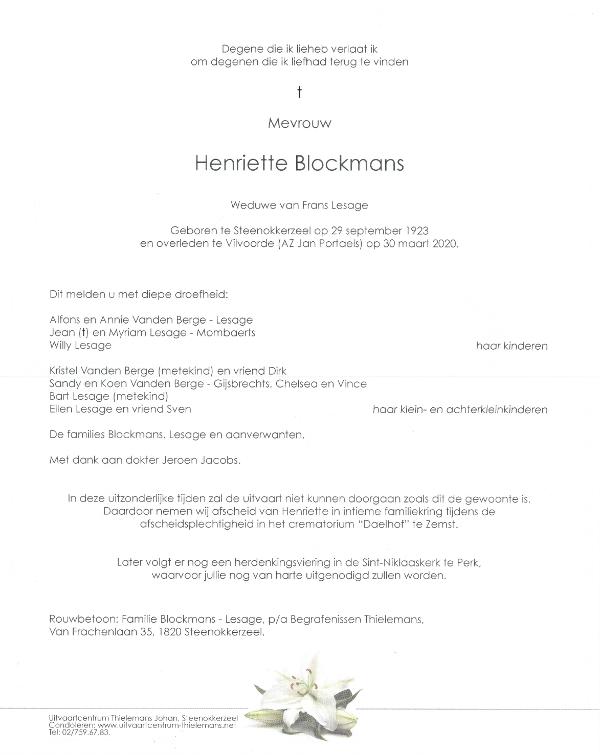 Overleden te Perk (1820) op maandag 30 maart 2020 op 96-jarige leeftijd