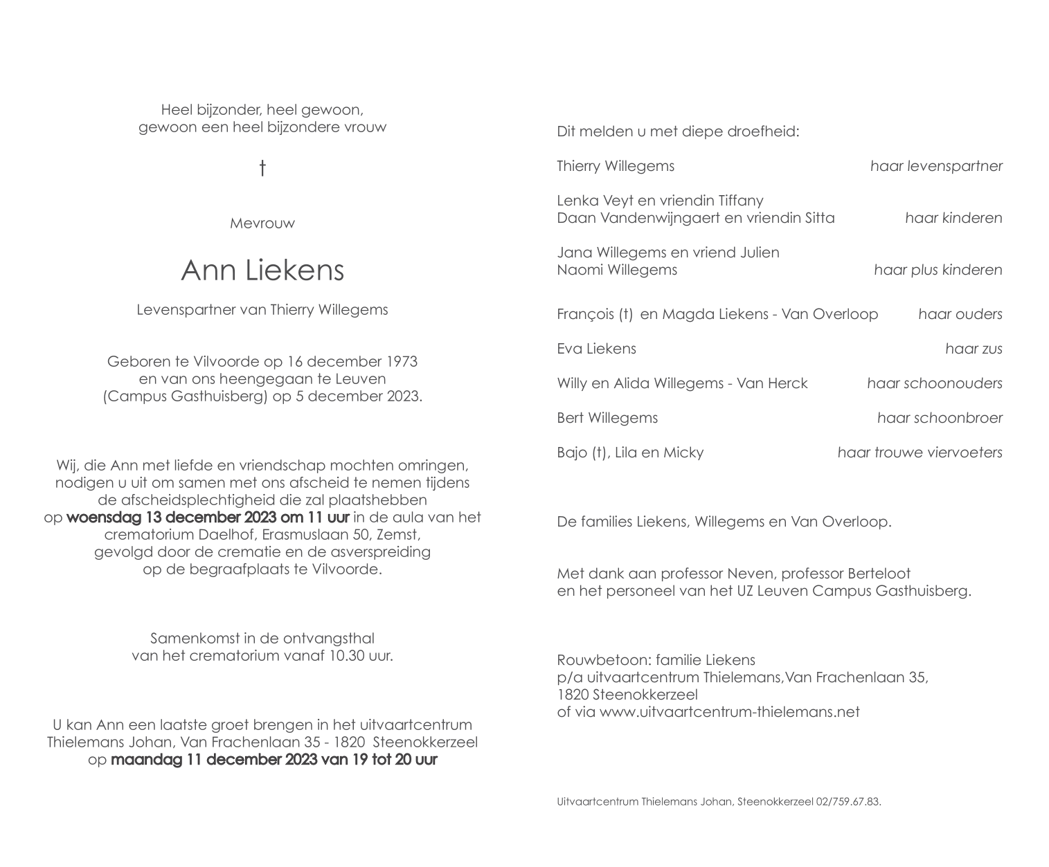 Overleden te Leuven (3000) op dinsdag 5 december 2023 op 49-jarige leeftijd