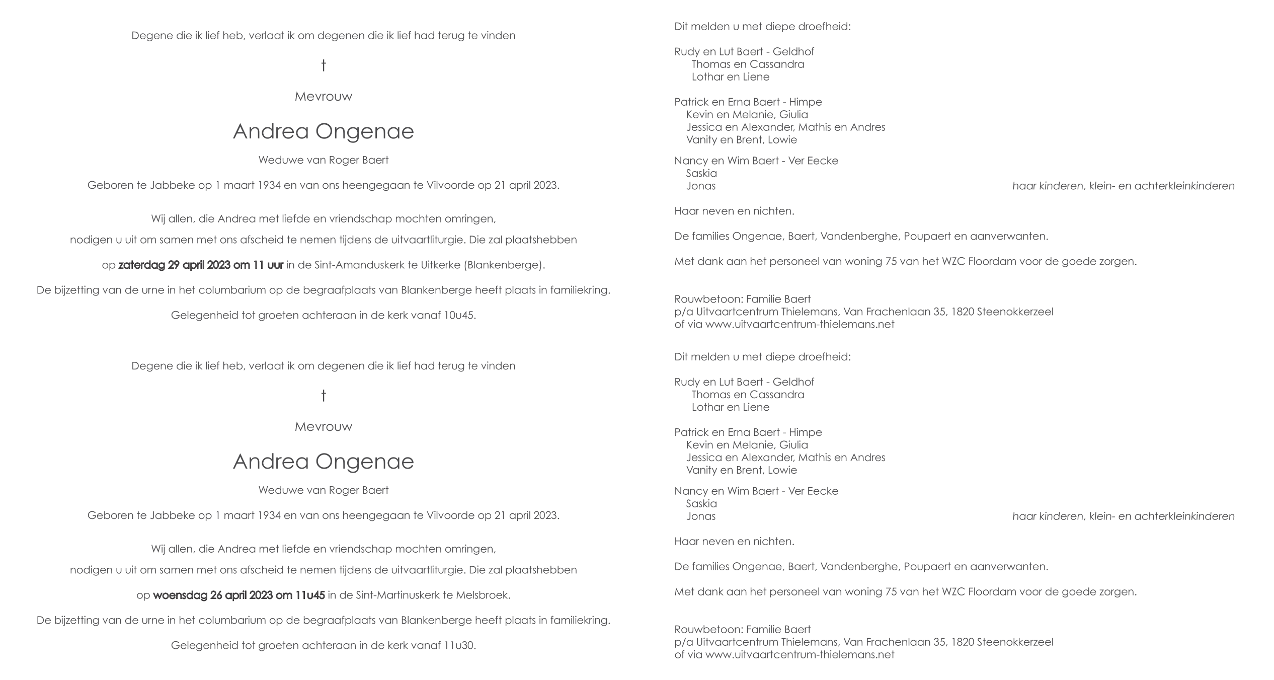 Overleden te Vilvoorde (1800) op vrijdag 21 april 2023 op 89-jarige leeftijd