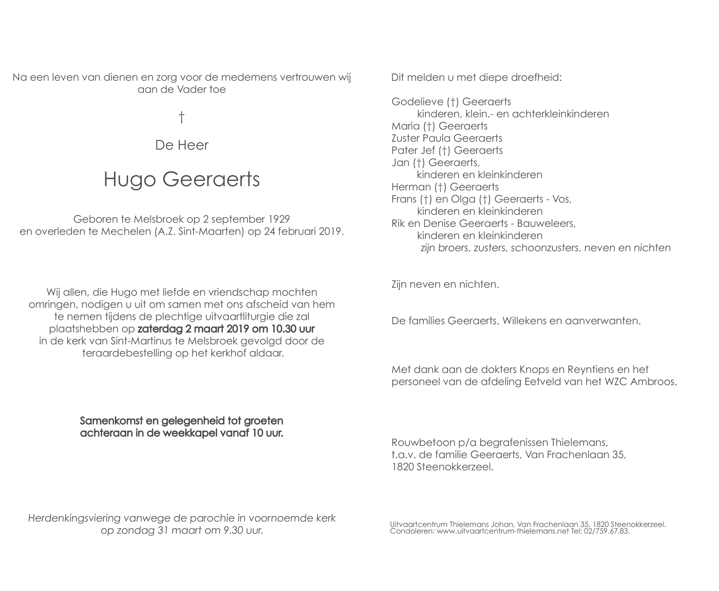 Overleden te Mechelen (2800) op zondag 24 februari 2019 op 89-jarige leeftijd