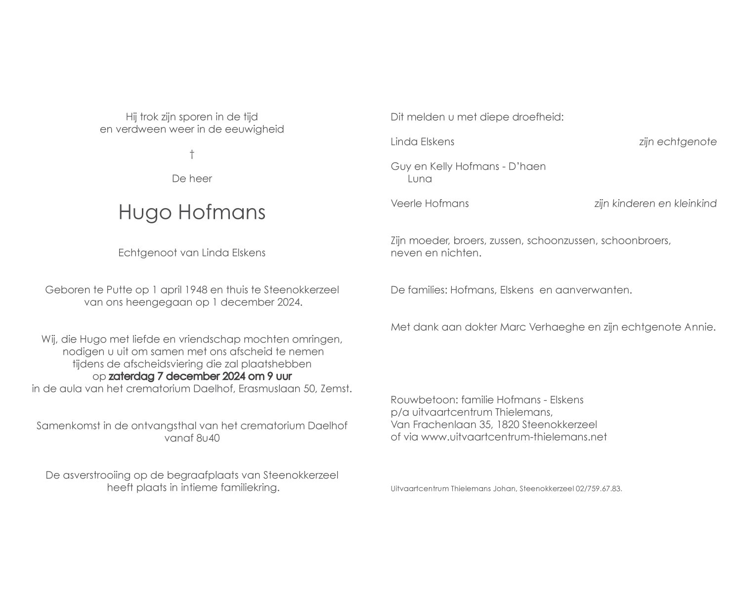 Overleden te Steenokkerzeel (1820) op zondag 1 december 2024 op 76-jarige leeftijd