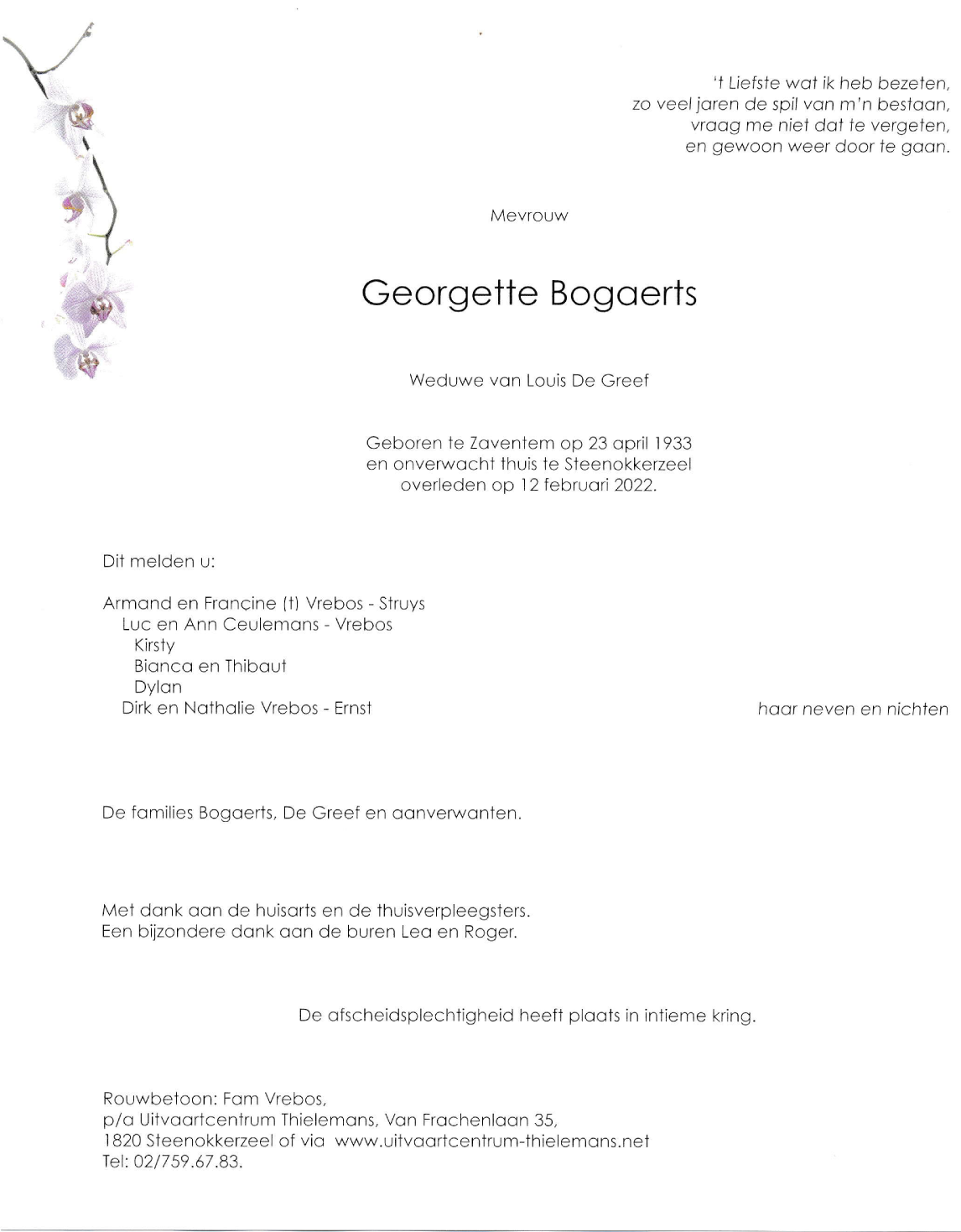 Overleden te Steenokkerzeel (1820) op zaterdag 12 februari 2022 op 88-jarige leeftijd