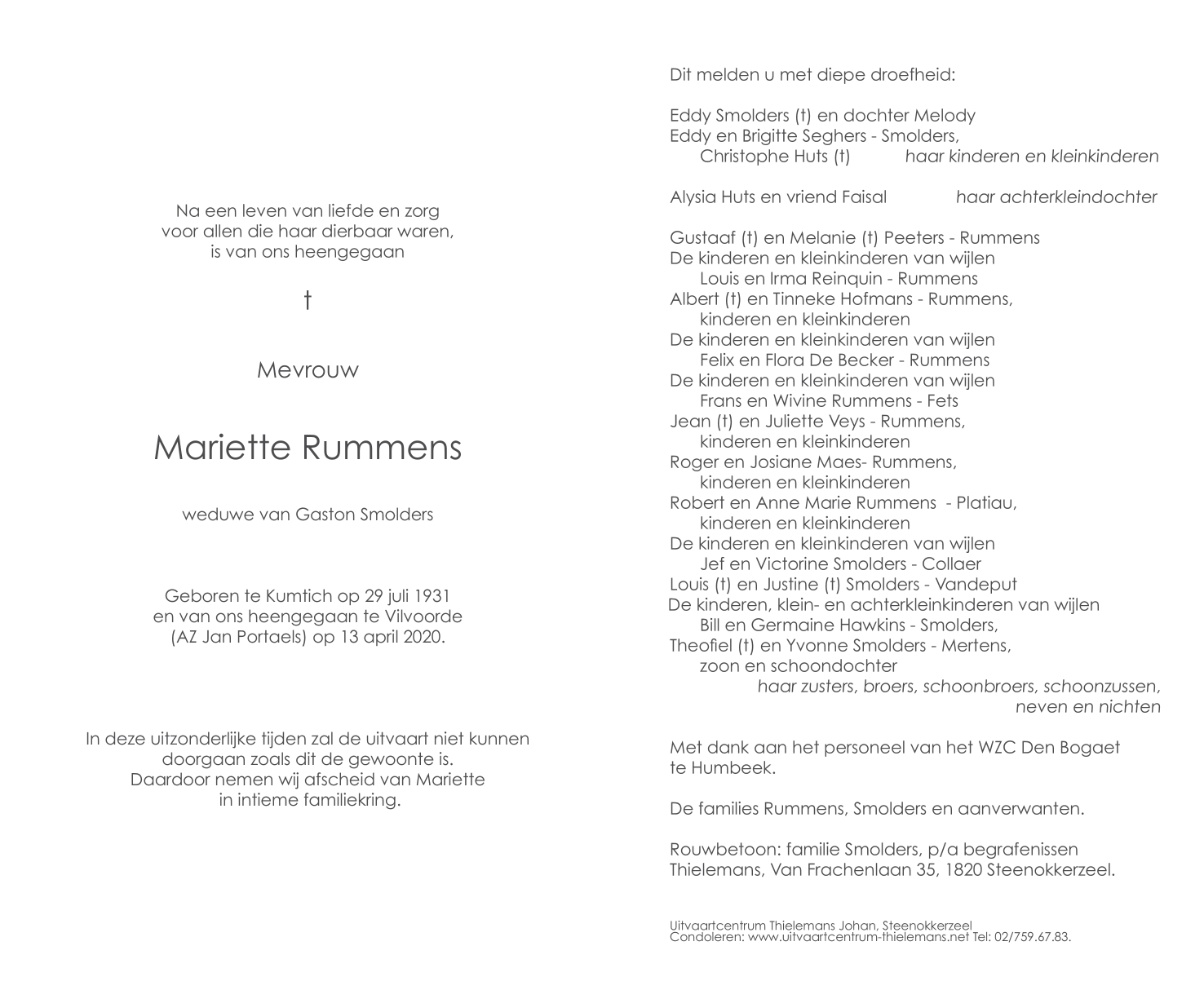 Overleden te Vilvoorde (1800) op maandag 13 april 2020 op 88-jarige leeftijd