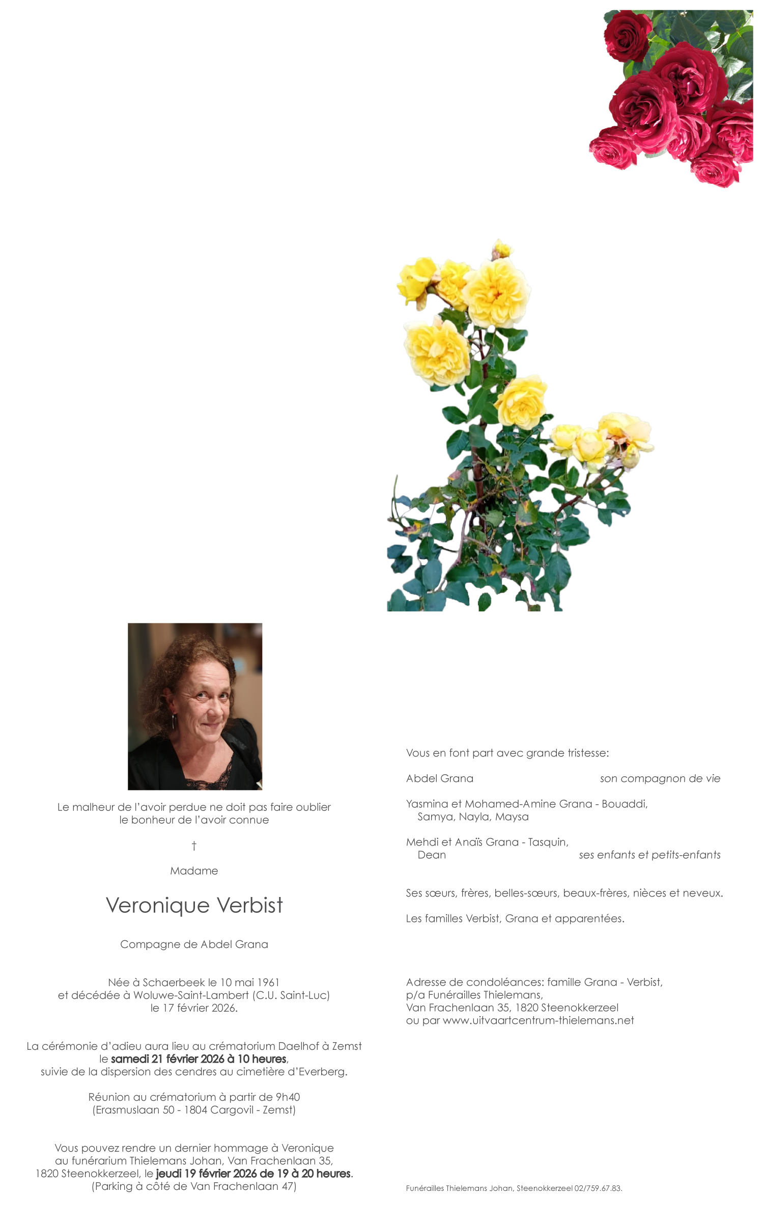 Overleden te Sint-Lambrechts-Woluwe (1200) op dinsdag 17 februari 2026 op 64-jarige leeftijd