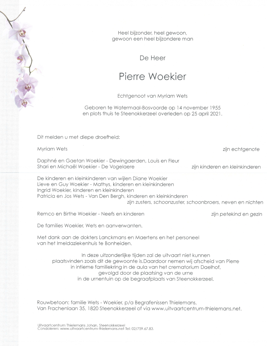 Overleden te Steenokkerzeel (1820) op zondag 25 april 2021 op 65-jarige leeftijd
